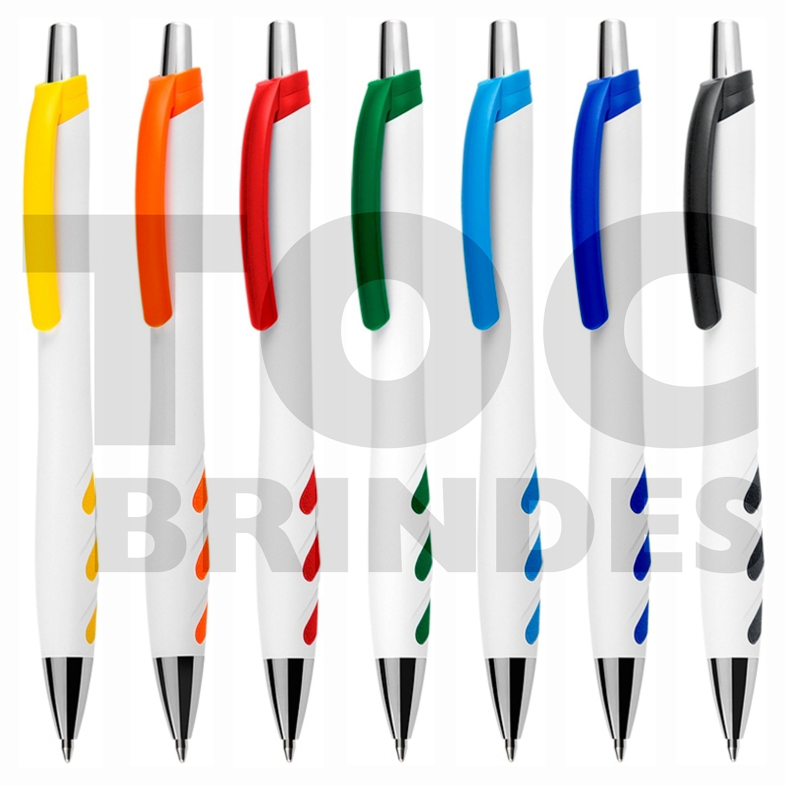 Essa caneta pode ser personalizada no corpo ou no clipe, através do processo de serigrafia, tampografia ou impressão digital, sendo essa última sem limite de cores.